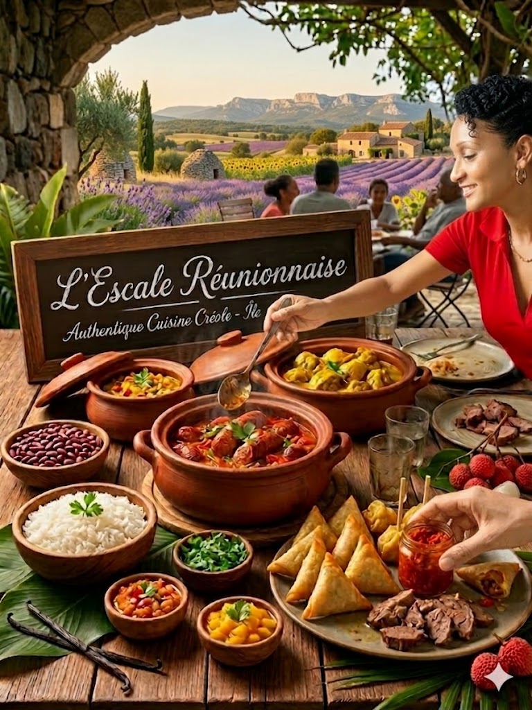 Avec L’Escale Réunionnaise , je recrée un petit bout de mon île à travers de la cuisine créole authentique, pleine de saveurs, de chaleur et de convivialité, comme autour d’une table sur mon île.
